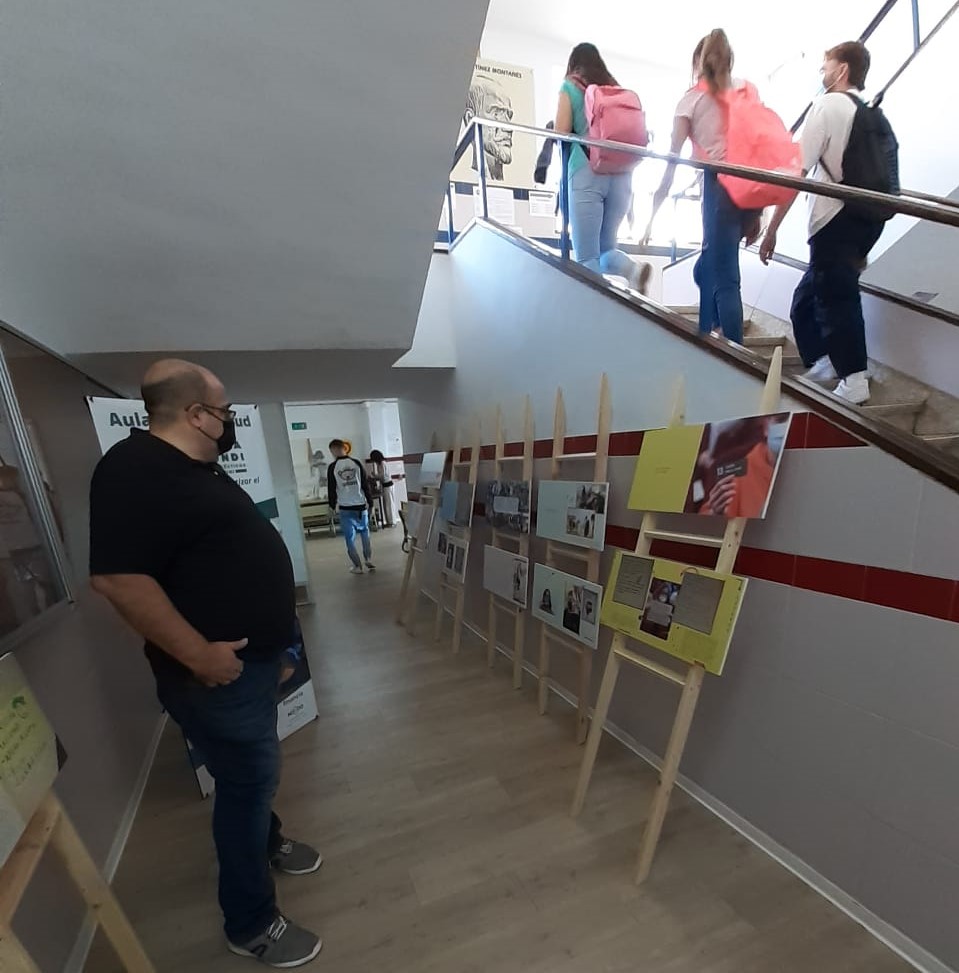 Esta semana se ha presentado la exposición y se ha hecho la entrega del fotolibro al alumnado y profesorado del IES Martínez Montañés, y en el hall del centro ha estado la exposición una semana. Reencuentros que emocionan por el simple hecho de volvernos a ver y por ver, la alegría del profesorado y alumnado participante, cuando ven el resultado de su trabajo. Resultado de trabajar la salud global (teniendo muy en cuenta la vinculación con la pandemia) a través de talleres de investigación creativos (storytelling) y fotografía participativa.