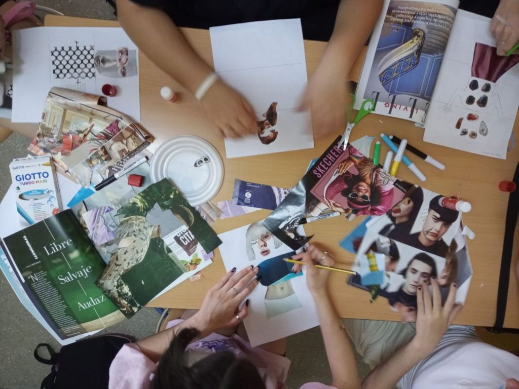 El alumnado de los tres IES participantes se quedó bastante mosca después de haberles presentado qué era un fanzine. No entendían muy bien cómo iban a poder hacer una «revistilla» que tratara sobre el colectivo LGTBI y la equidad de género. Tanto Nuria (servicio externo) como Farmamundi no quisimos guiar en exceso, así que comenzamos por una indicación clara: componer una figura humana a través de dibujos y recortes de revistas para que después pudieran decirnos «te presento a…».